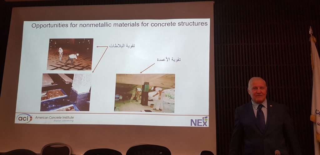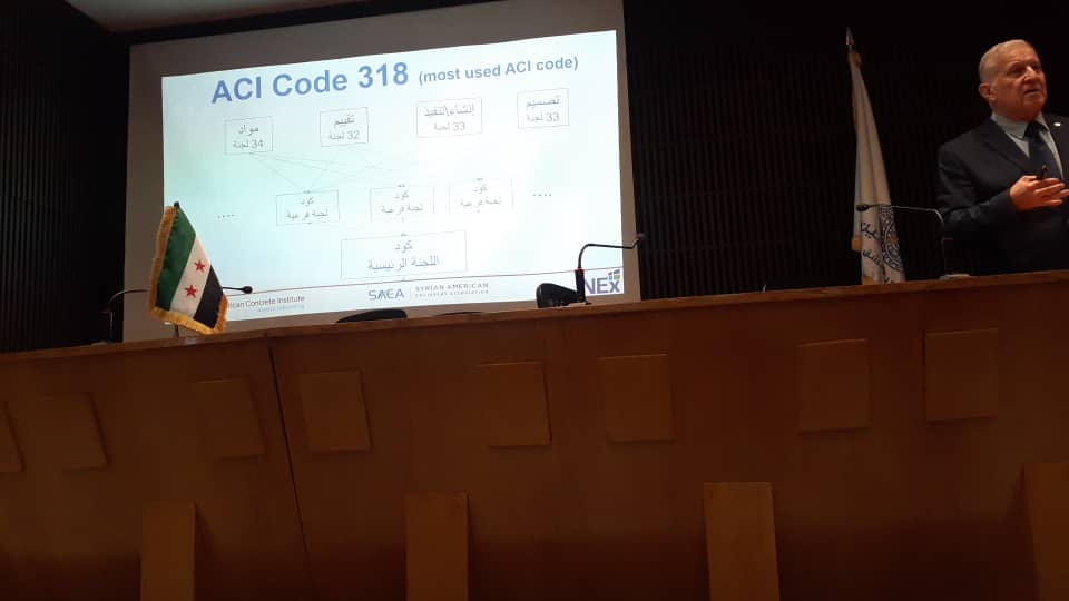 كما أشار النحلاوي على نوع كود آخر مصمم بالتسليح دون حديد لتحسين البيئة وانشاءالله سيأتي لسوريا ويكون تفاعل وتعاون بينها وبين معهد الخرسانة الأميركية .