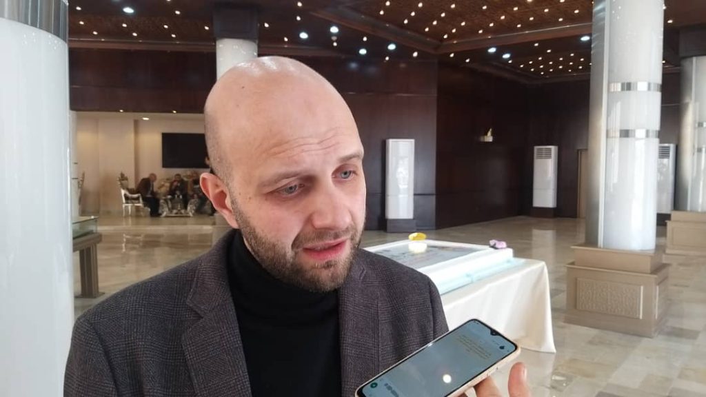 السيد محمد زيزان عضو مجلس إدارة غرفة صناعة حلب ورئيس لجنة المعارض بالغرفة ومنظم معرض موتكس خان الحرير يؤكد بأن المعرض تصديري شعاره سوريا تصدر للعالم حيث قدمنا دعوة ل ٦٥٠ رجل أعمال للحضور وحضر أكثر من ذلك بسبب الدعاية القوية للمعرض ورسالة المعرض هي: صناعتنا بخير بعد التحرير وهي بتطور دائم ودورنا كصناعيين دعم الصناعة ولدينا لاحقا معرض بأربيل ضخم يضم٣٠٠ صناعي مشارك، وعن الشباب السوري يؤكد زيزان دعمهم للشباب خاصة أنهم أثبتوا للعالم أن للصناعة السورية تاريخ وعراقة من خلال تواجدهم بالمغترب وهذا ماندرسه لأبنائنا واليوم معنا بالمعرض نسبة كبيرة من الشباب المشاركين .