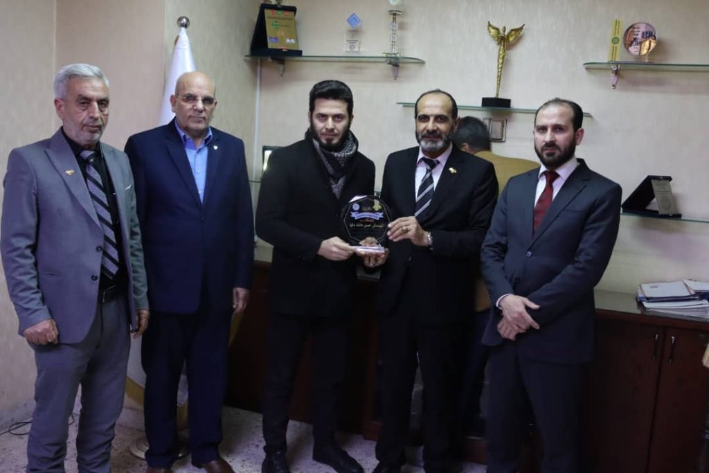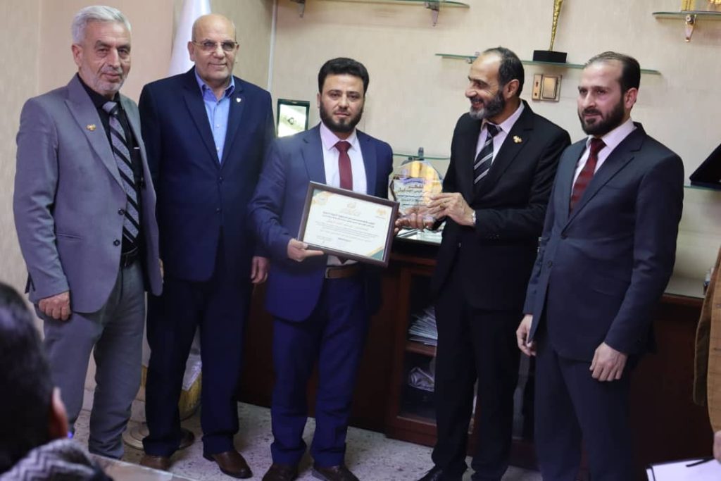 وتقديرا لاعمالهم قام مجلس النقابة بتكريمهم بحضور النقيب المهندس مالك حاج علي والسيد محمد العمر وزير الإعلام السابق . ونقيب المهندسين بفرع ادلب.